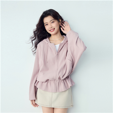 Waffle ruffle hem loose hooded jacket