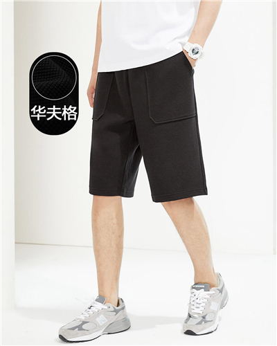 Big pockets elastic waist waffle shorts