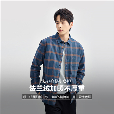 Flannel single pocket long sleeve cotton shirt
