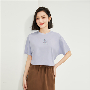 100% Cotton flower embroidery short sleeve tee