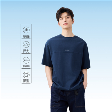 【Online Exclusive】Men's Cool touch patchwork pocket crew neck short-sleeved T-shirt