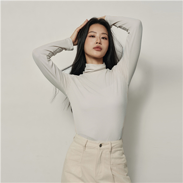 Women's Korea Collection Turtleneck Slim Fit Long Sleeve Striped Tee