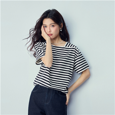100% Cotton 3/4 sleeve curved hem sweat tee