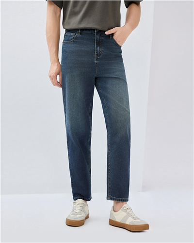 Moustache effect mid rise denim jeans