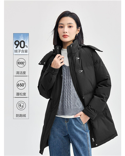 Metallic buckle mid long hooded duck down jacket
