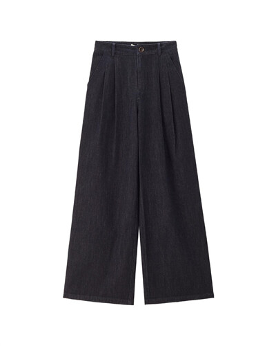 High waist wide leg pleated denim jeans