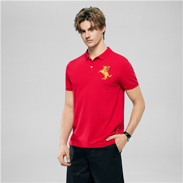 Men's Lion Embroidery Short Sleeve Polo