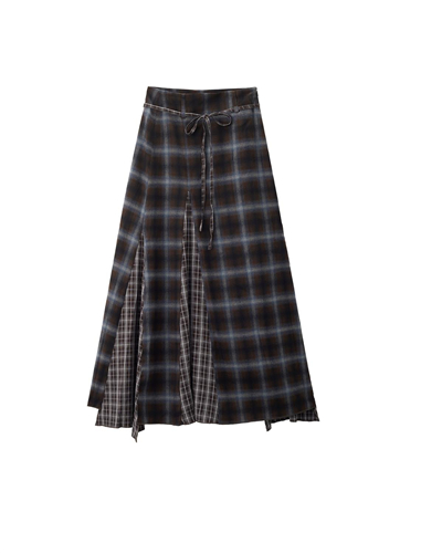 [Online Exclusive] Women's Irregular Patchwork Plaid Tie Skirt
