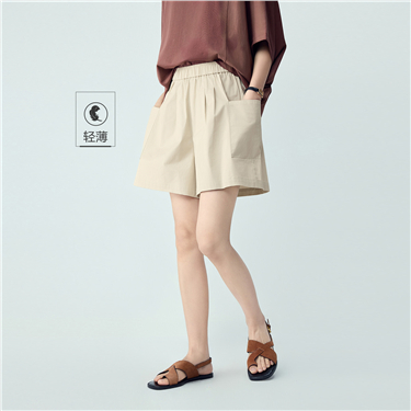【網上獨家】女裝彈力棉梭織大口袋松緊腰薄裙褲短褲