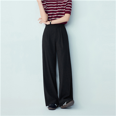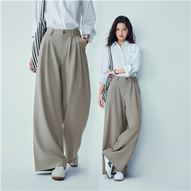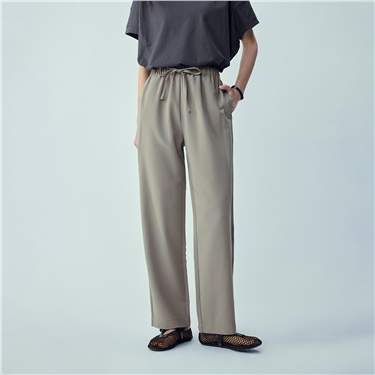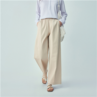 【網上獨家】女裝壓褶半鬆緊腰闊腿休閒褲