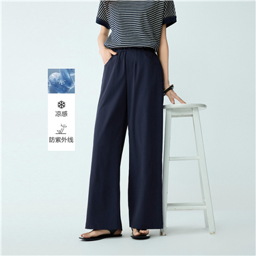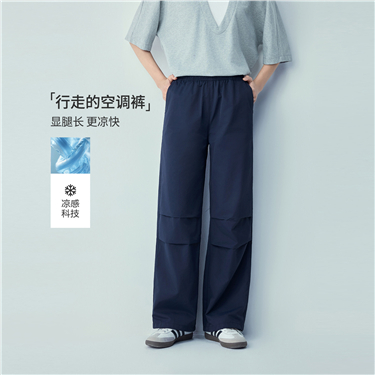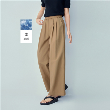【網上獨家】女裝涼感壓褶口袋鬆緊腰闊腿長褲