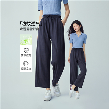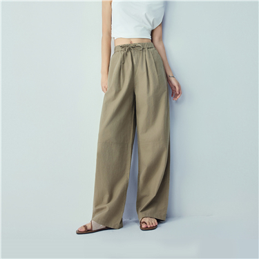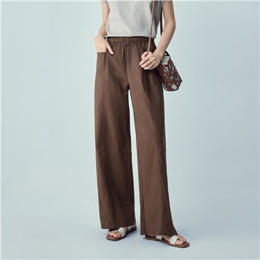【網上獨家】女裝天然棉麻抽繩鬆緊腰梭織休閑長褲