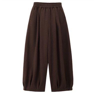 【網上獨家】女裝複古層次壓褶鬆緊腰梭織闊腿長褲