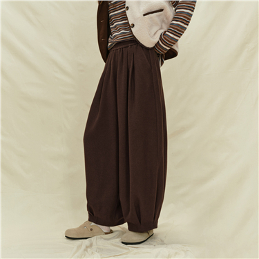 【網上獨家】女裝麻感打褶鬆緊腰闊腿休閑長褲