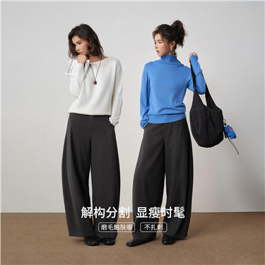 【網上獨家】女裝磨毛破骨高腰闊腿長褲