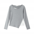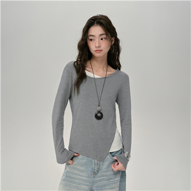 【網上獨家】女裝假兩件撞色不規則下擺圓領長袖T恤