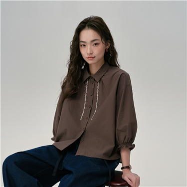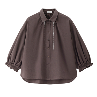 【網上獨家】女裝撞色繡花門筒七分袖襯衫