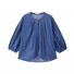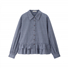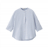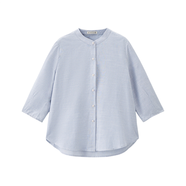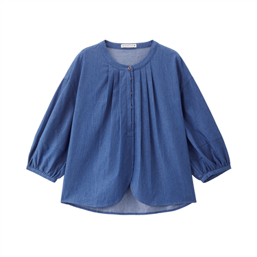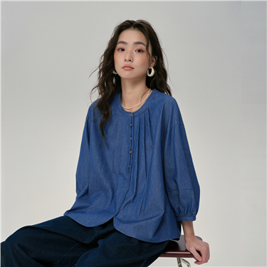 【網上獨家】女裝棉壓褶圓領弧形下擺七分袖牛仔襯衫