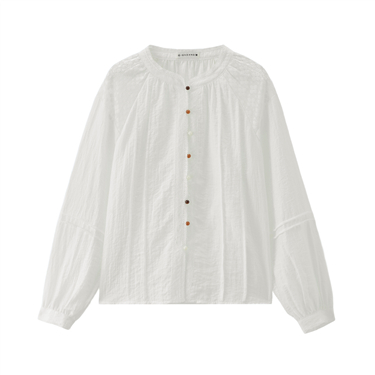 【網上獨家】女裝純棉鏤空串珠圓領插肩短袖襯衫