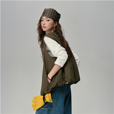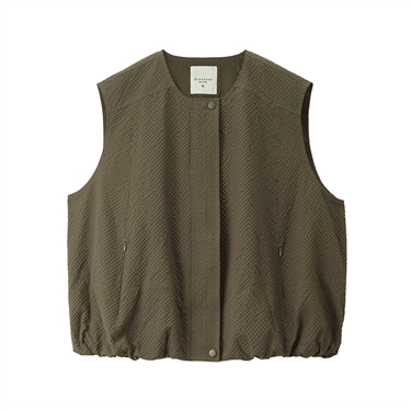 【網上獨家】女裝泡泡戶外暗格紋圓領馬甲外套