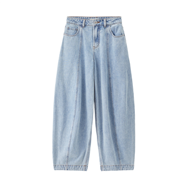 【網上獨家】女裝洗水明線壓褶高腰蘿蔔牛仔長褲