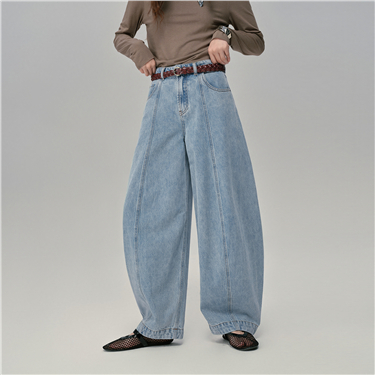 【網上獨家】女裝洗水五袋款半鬆緊腰闊腿牛仔長褲