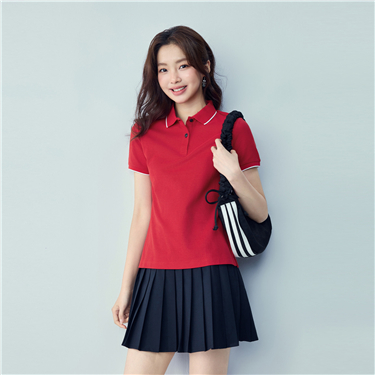 【韓國系列】女裝萊卡棉純色翻領短袖Polo