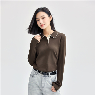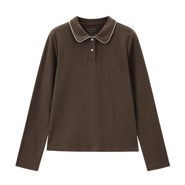 【網上獨家】女裝純棉撞色邊針織長袖POLO