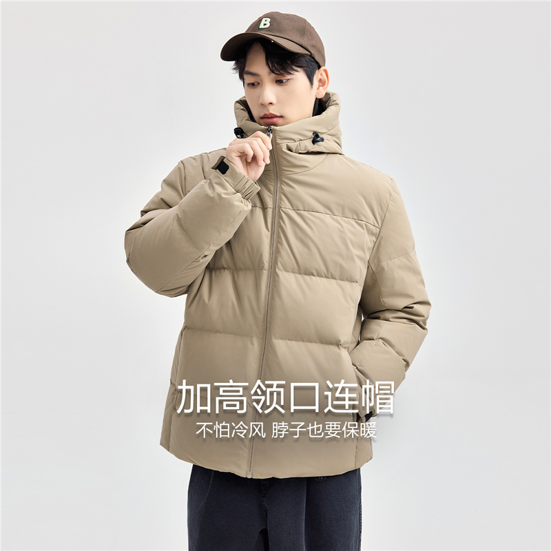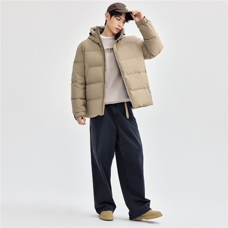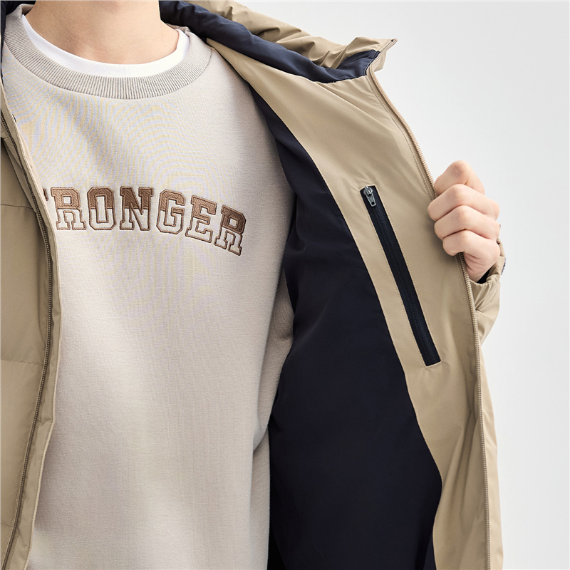 【網上獨家】男裝鴨絨拉鏈口袋連帽梭織羽絨外套