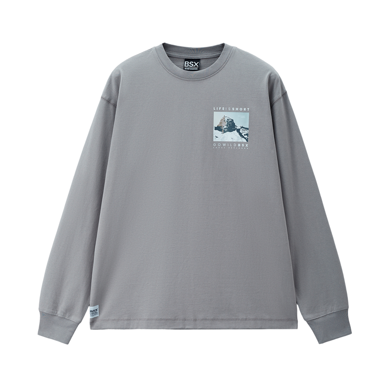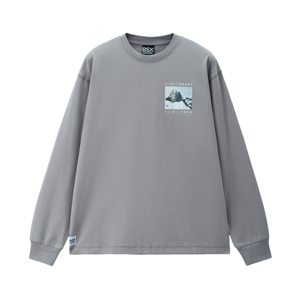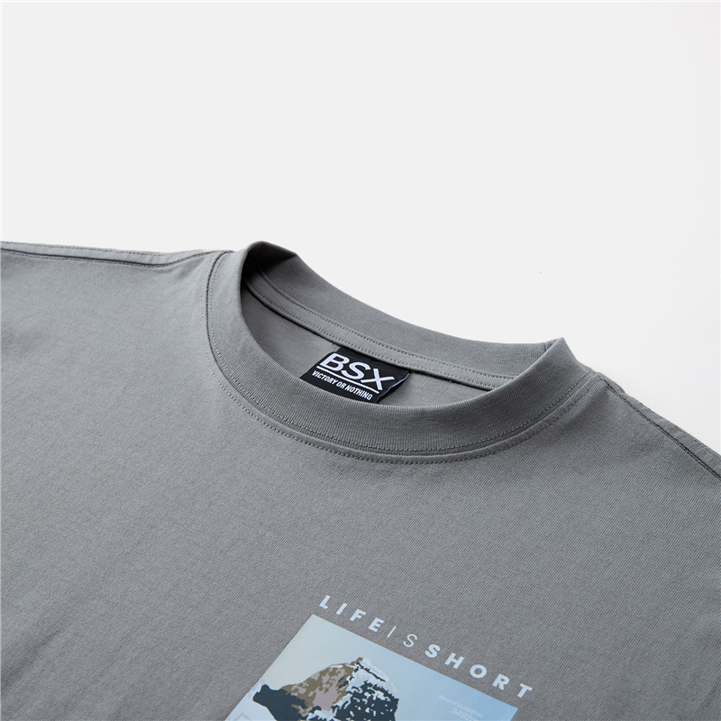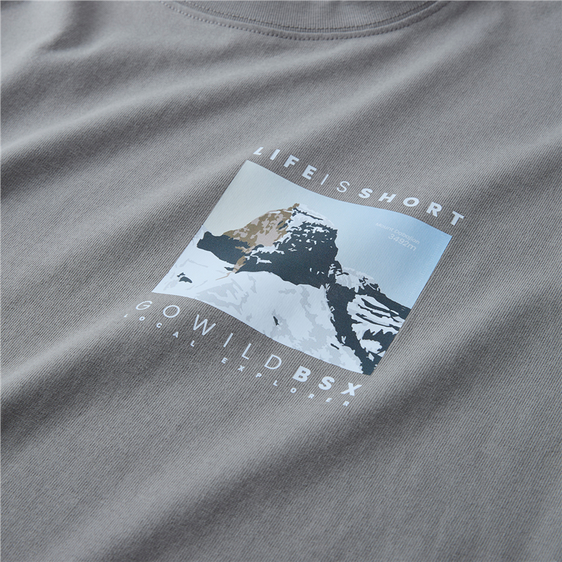 100%棉平紋布,質感細膩 羅紋圓領,不易變形,易穿易搭< 雪山風景印花,工藝精湛,活力十足。