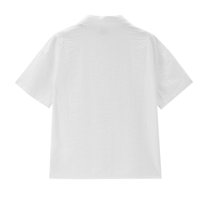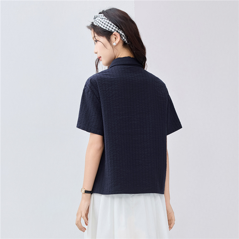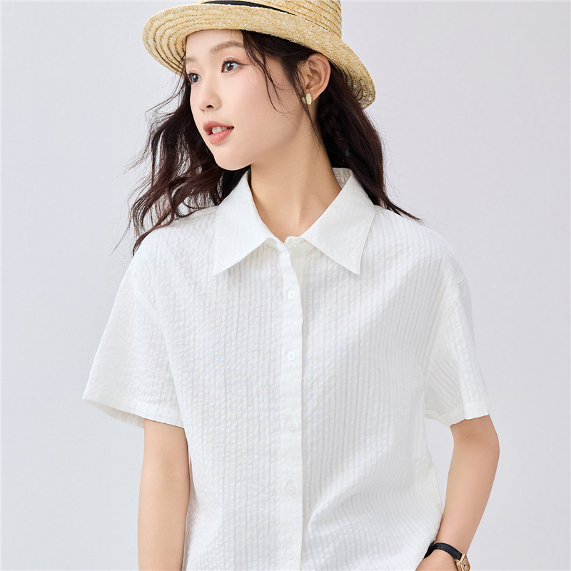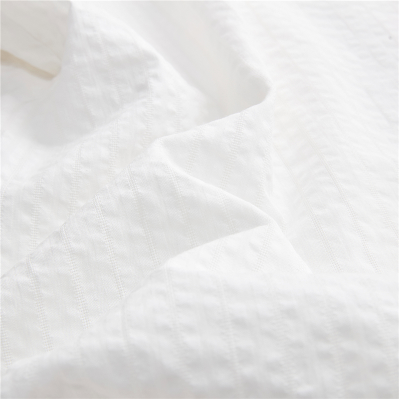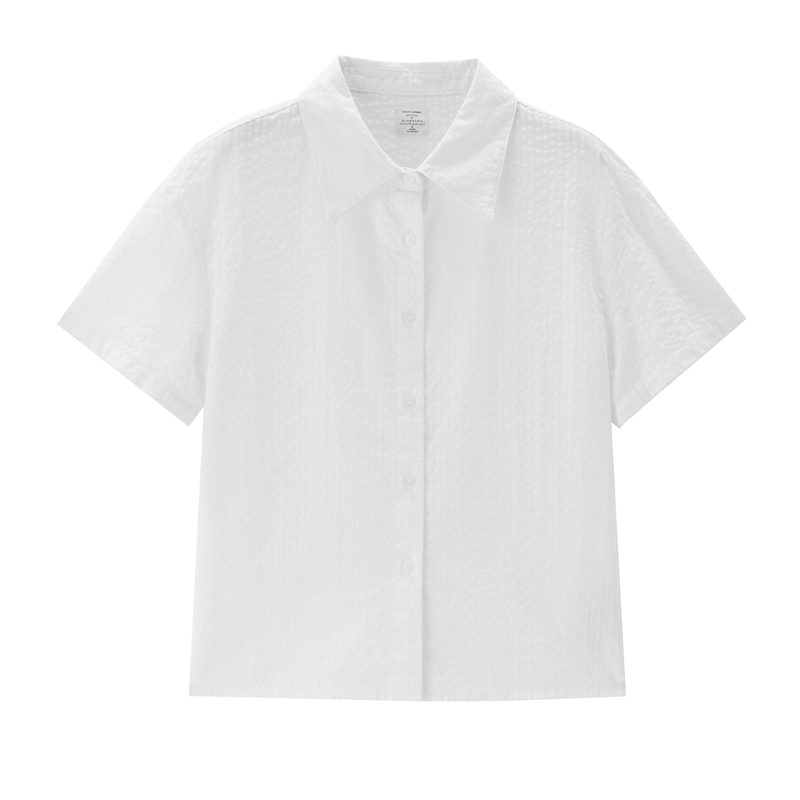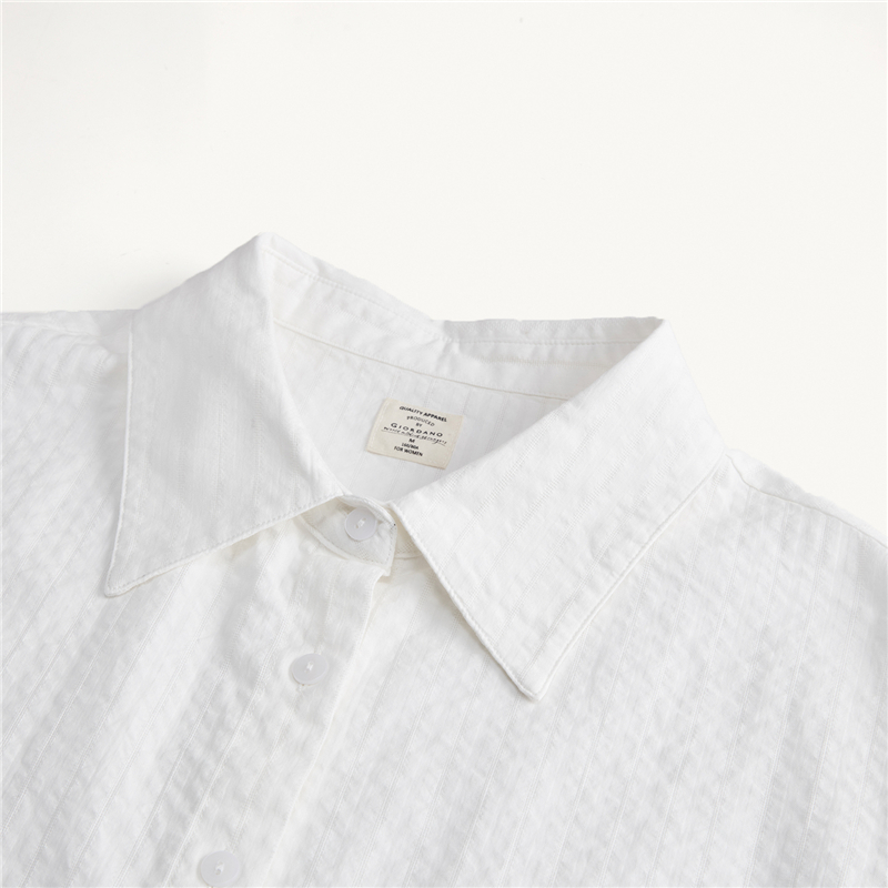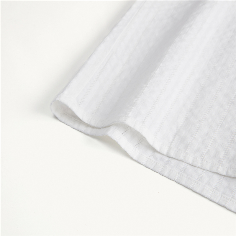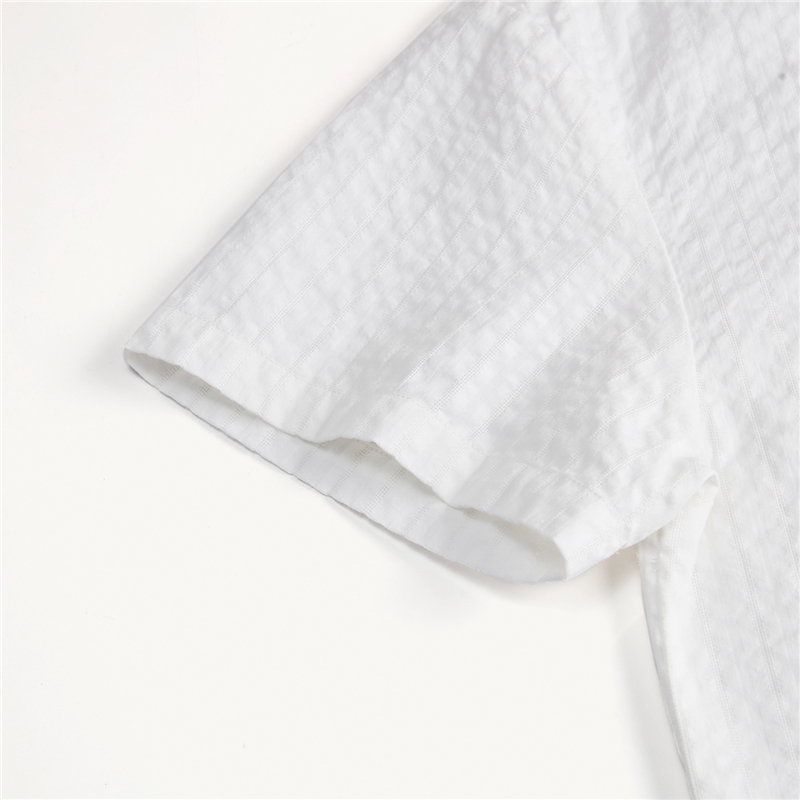 100%棉提花條子面料,富有肌理;尖領設計,型格工整,幹淨利落;紐扣門襟,結實牢固,穿脫方便。