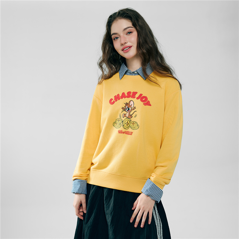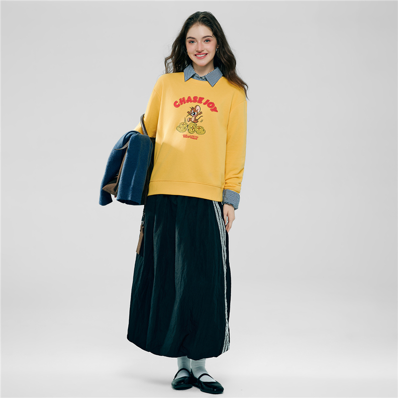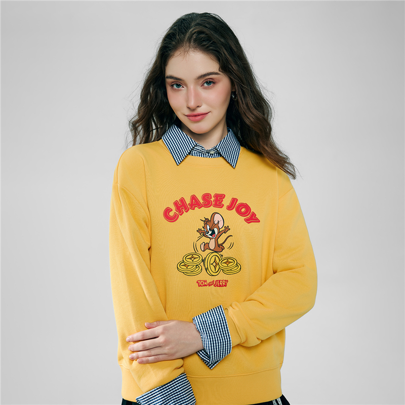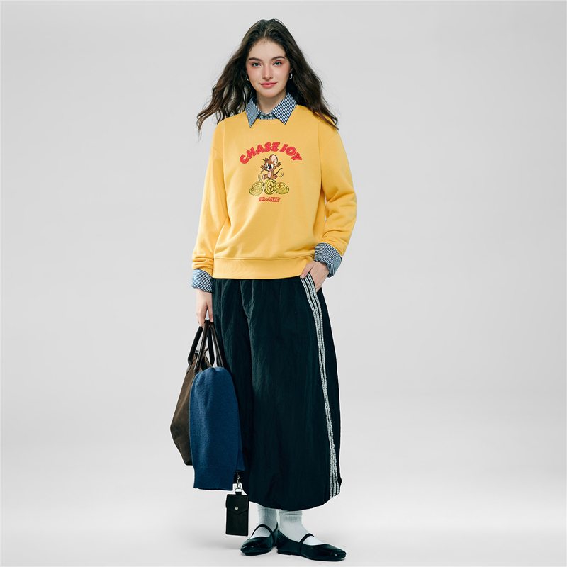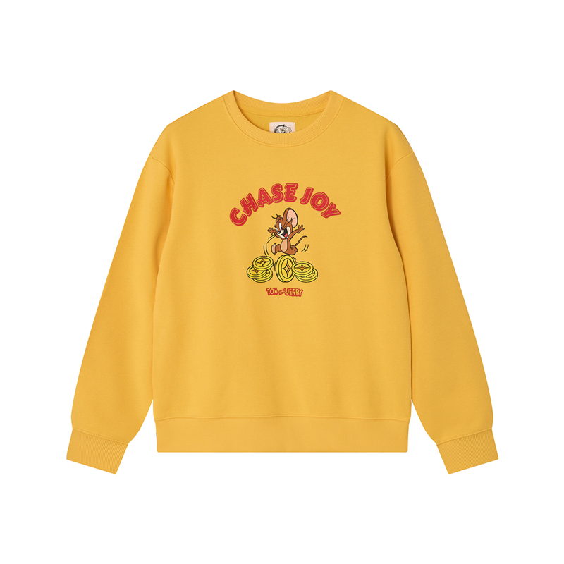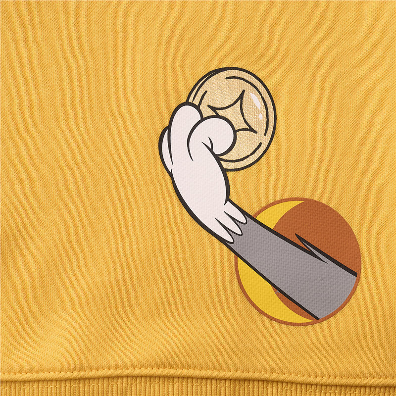 毛圈底棉質衛衣,手感舒適。 男友版型時尚不挑人,紅色衫身活力亮眼。 聯名印花,趣味活力;發泡,薄膠漿和厚板物料切割多重工藝結合,精緻獨特有層次感。