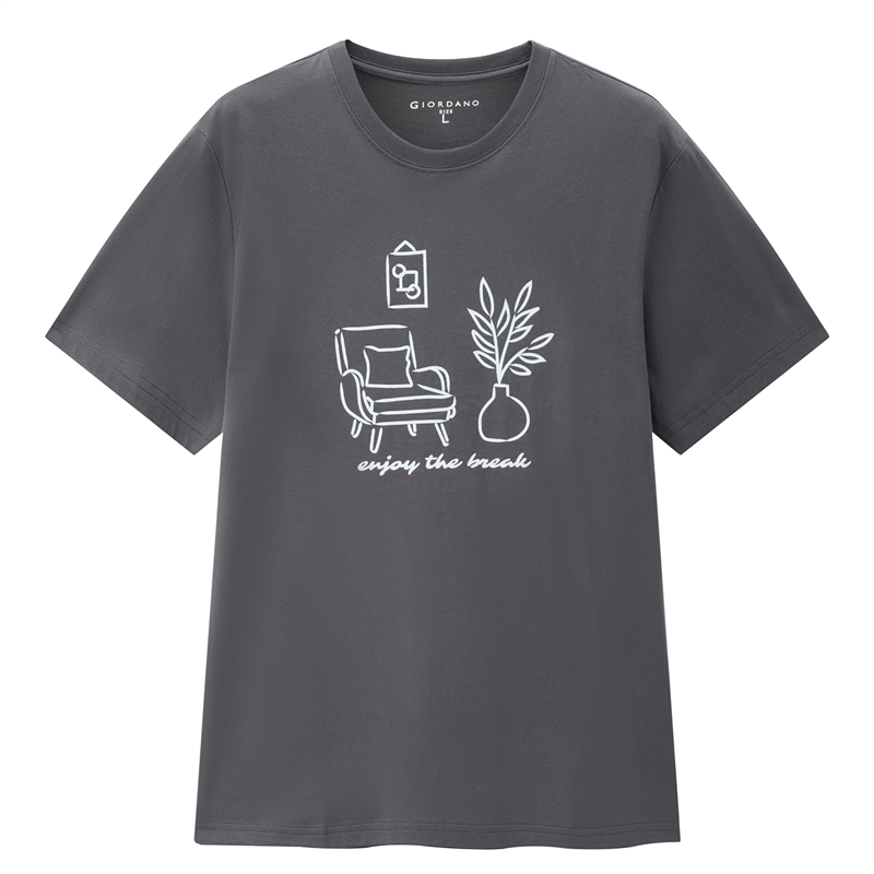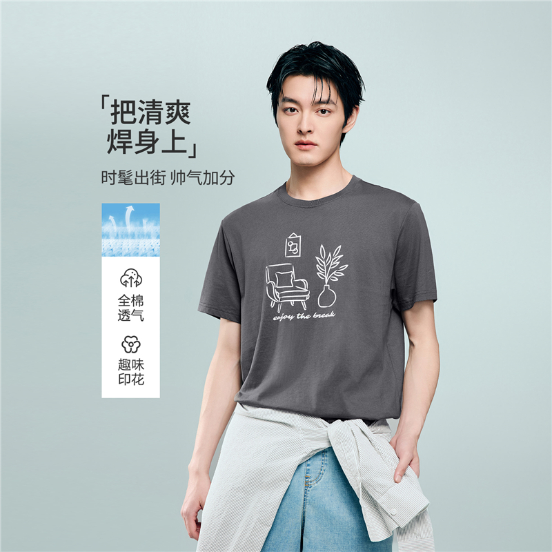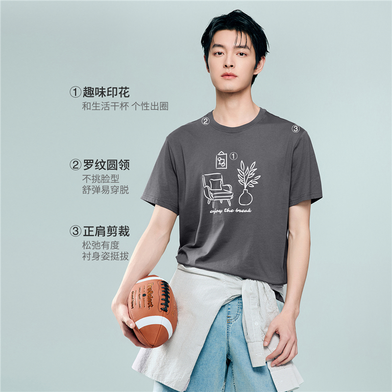100%棉面料,質感細膩;羅紋圓領,不易變形,易穿易搭;休閑生活主題印花,工藝精美,時髦吸睛。