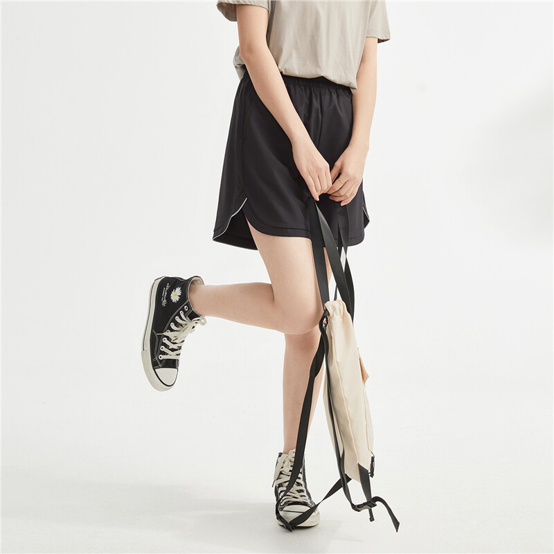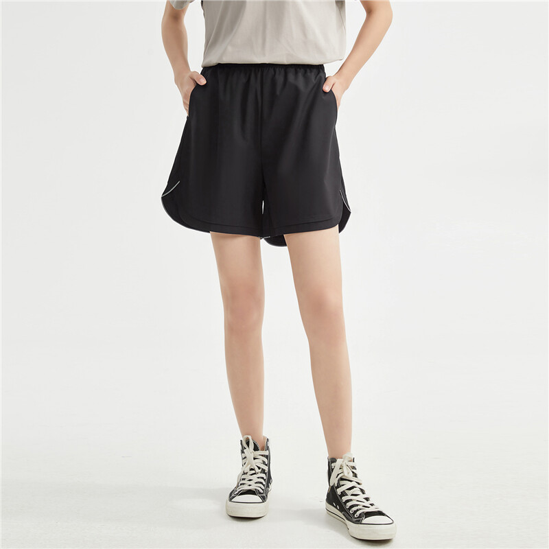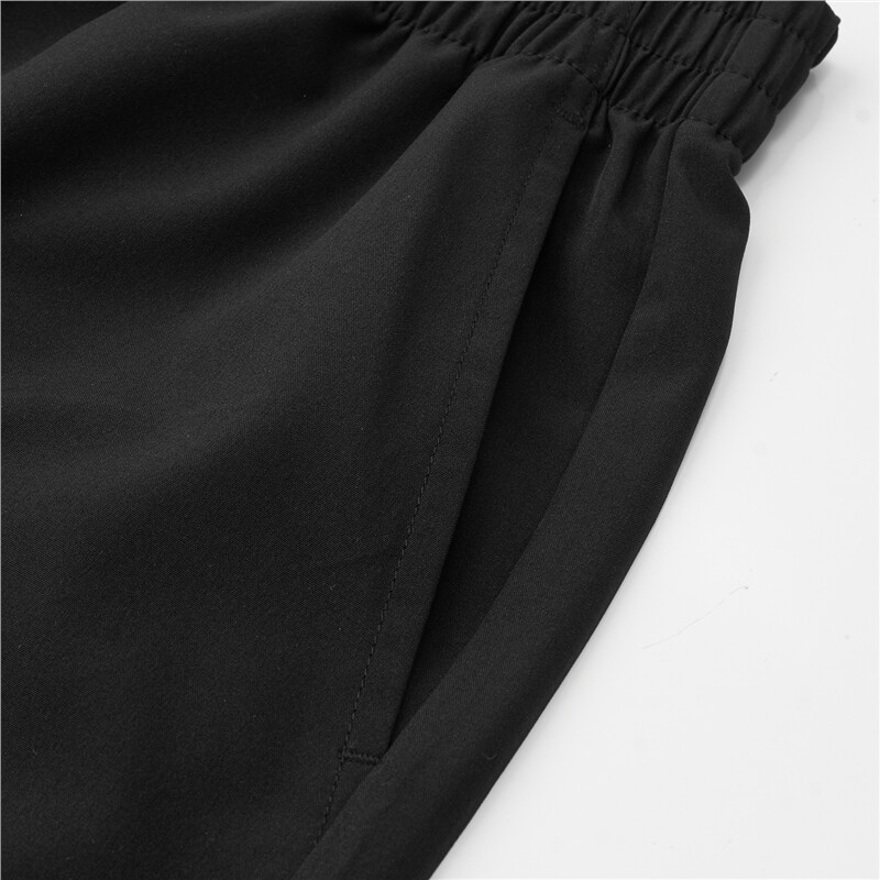 四面彈面料,質感細膩,輕薄透氣;鬆緊腰頭,貼合身形,舒適不勒身;口袋設計,收納方便,美觀實用;弧形褲腳,線條流暢,活動自如。