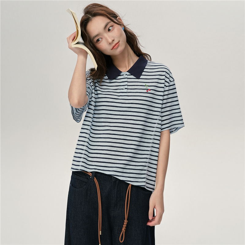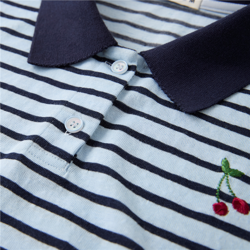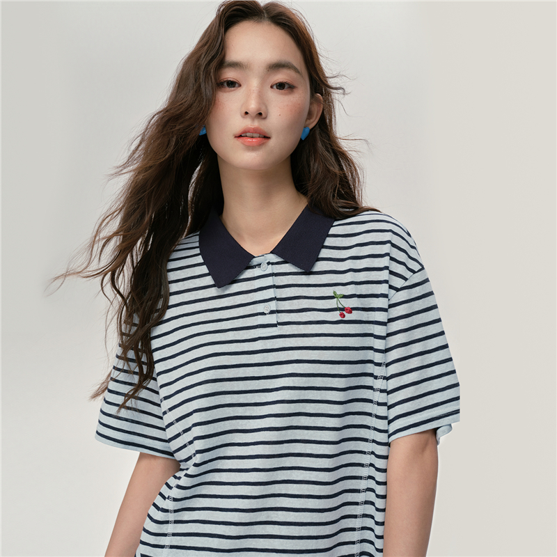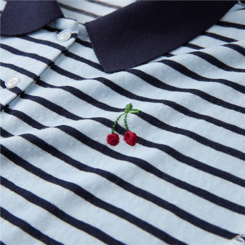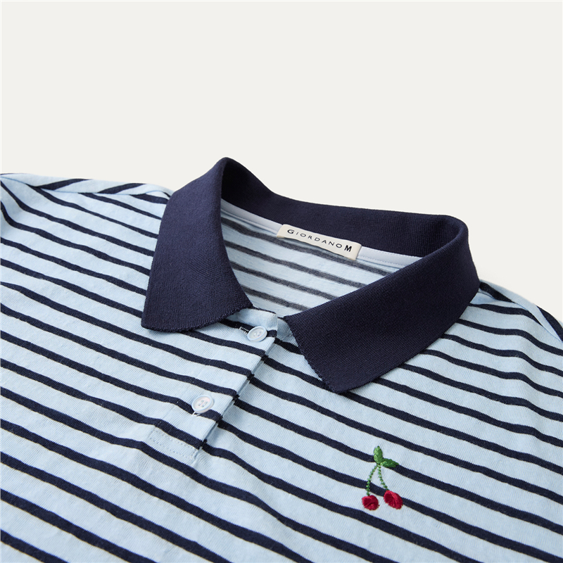 【網上獨家】女裝撞色條紋櫻桃刺繡短袖POLO