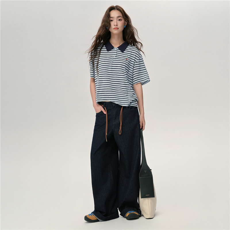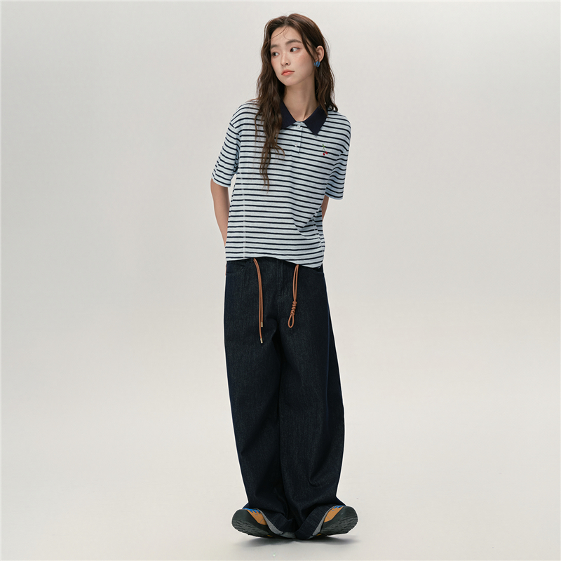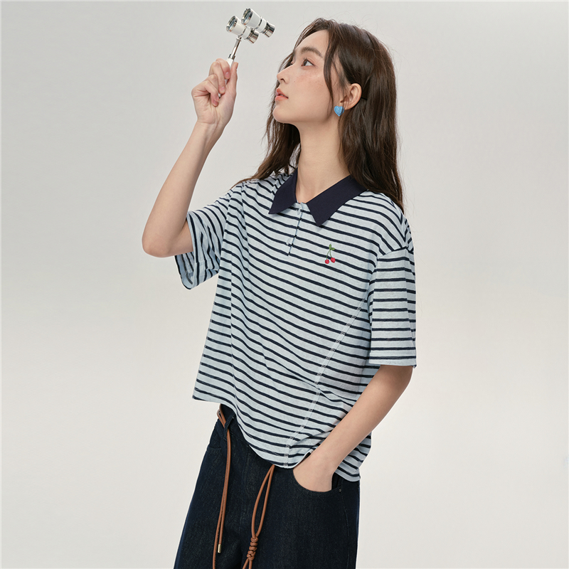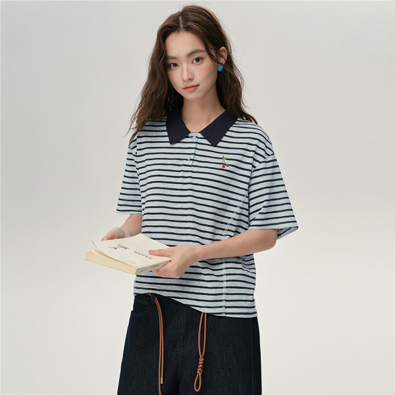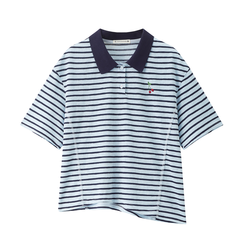 【網上獨家】女裝撞色條紋櫻桃刺繡短袖POLO