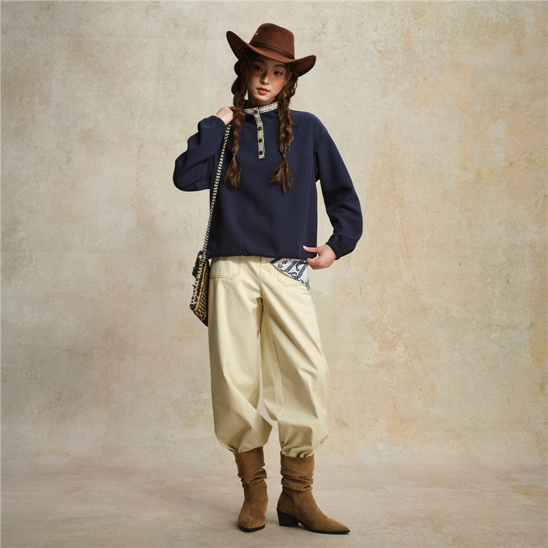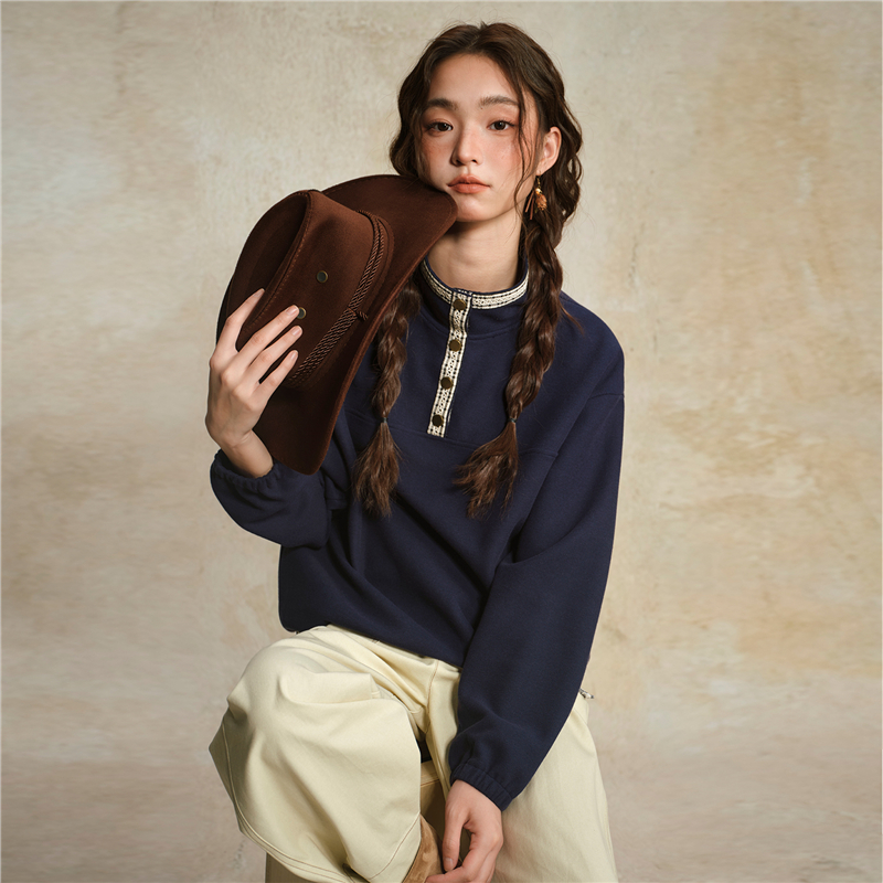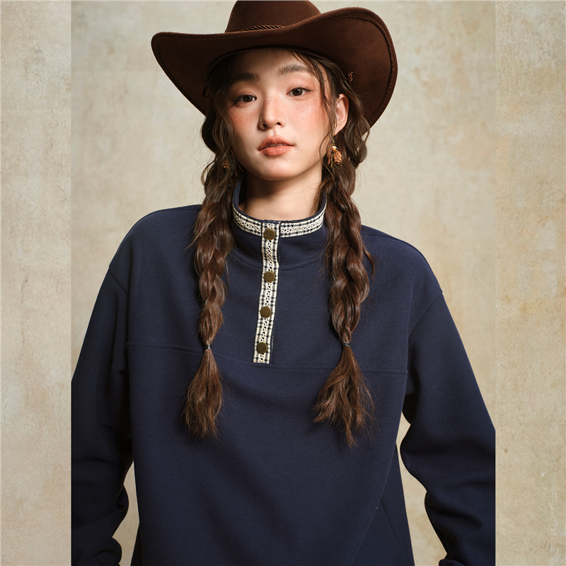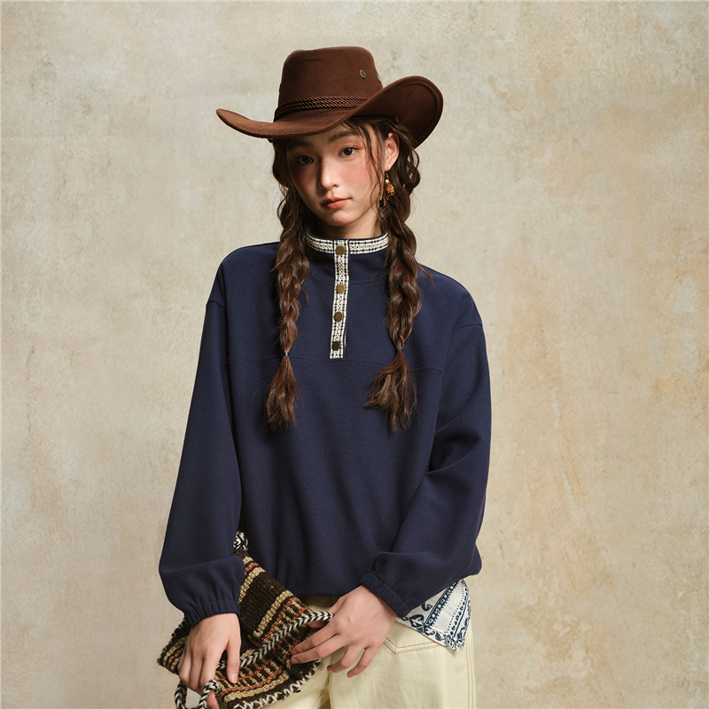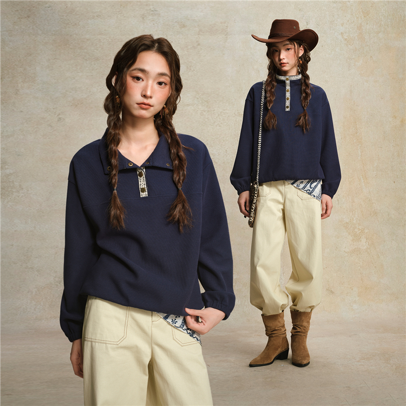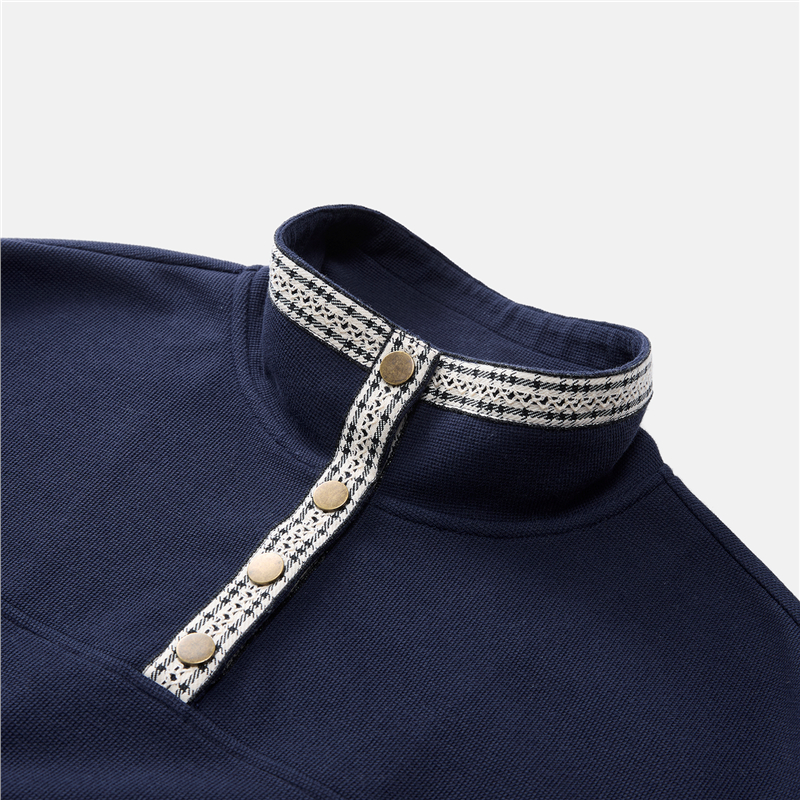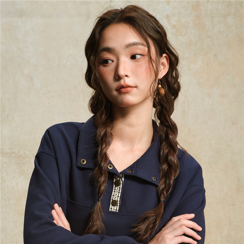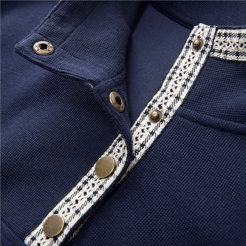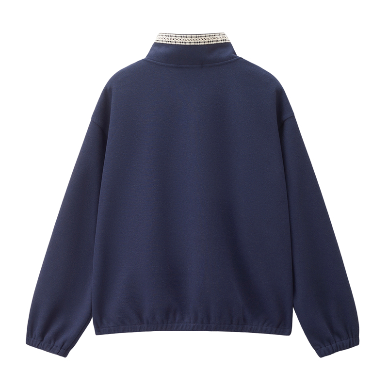 肌理米格針織布,質感細膩 立領設計,拼接撞色格紋,沖擊視覺 金屬按扣半開襟,結實牢固,穿脫方便。