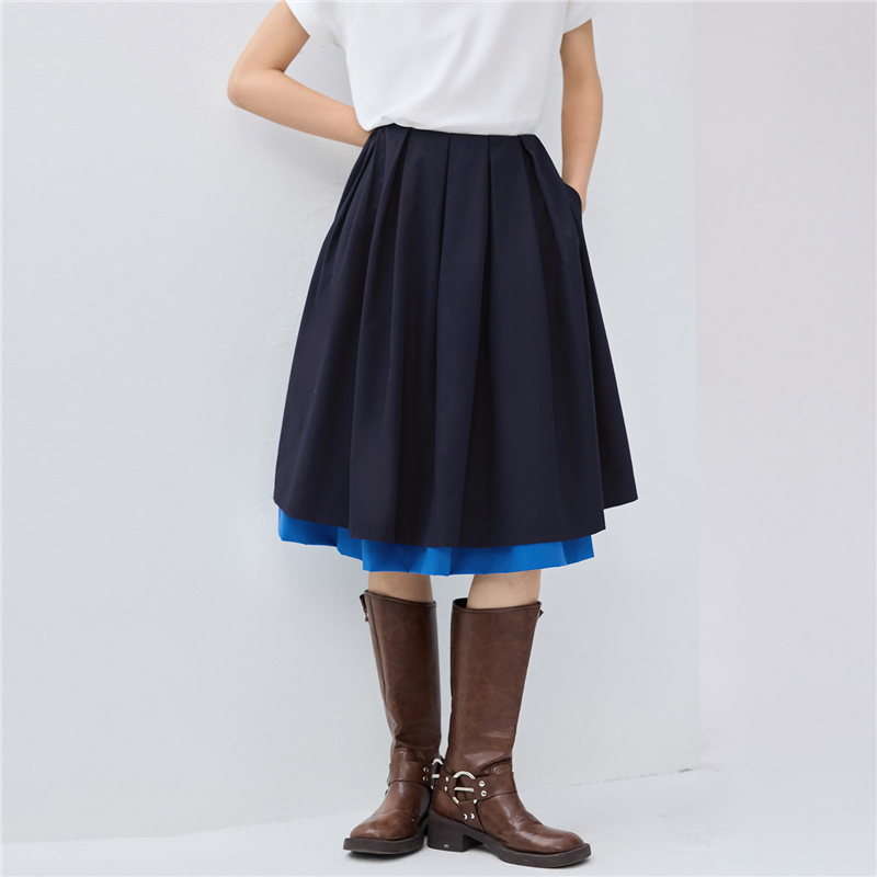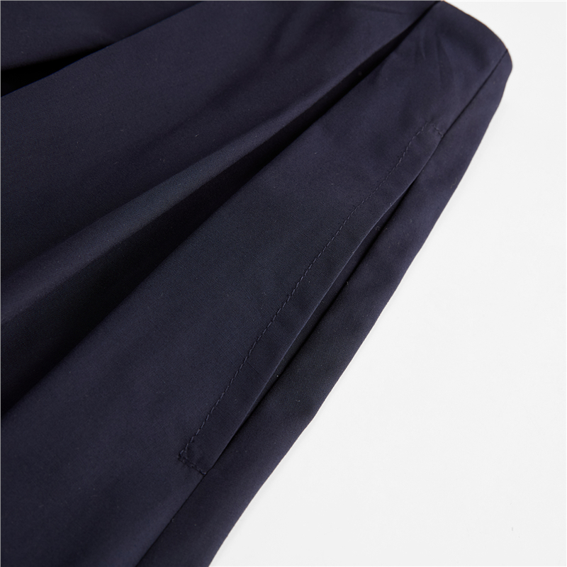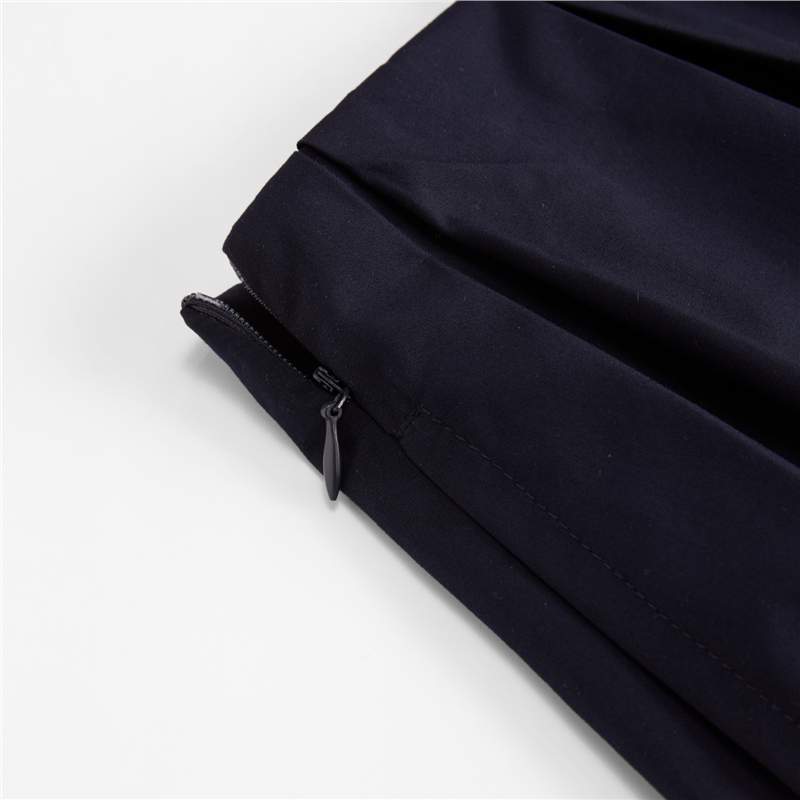高密襯衫料,輕薄不悶熱;腰側隱形拉鏈,順滑易拉,安全耐用;壓褶設計,層次分明,時尚挺括;撞色拼接下擺,沖擊視覺,與衆不同。