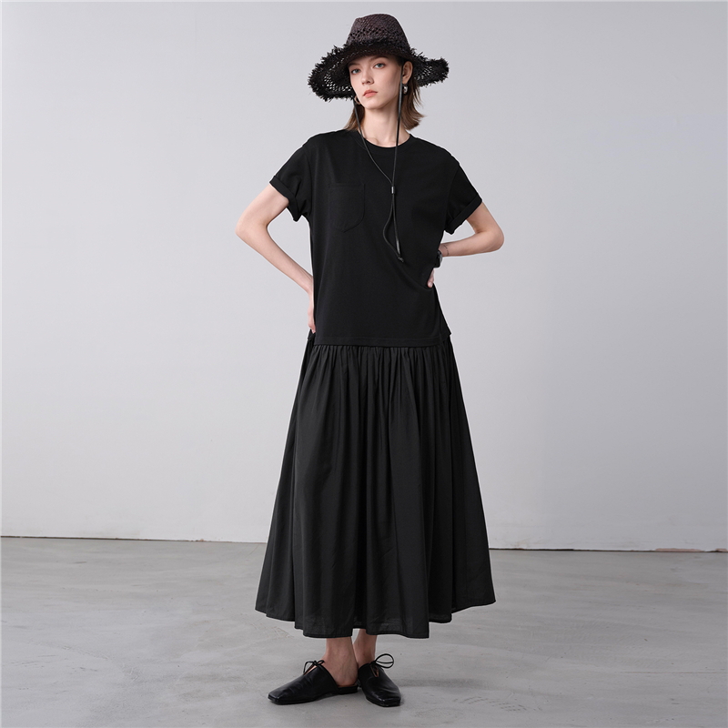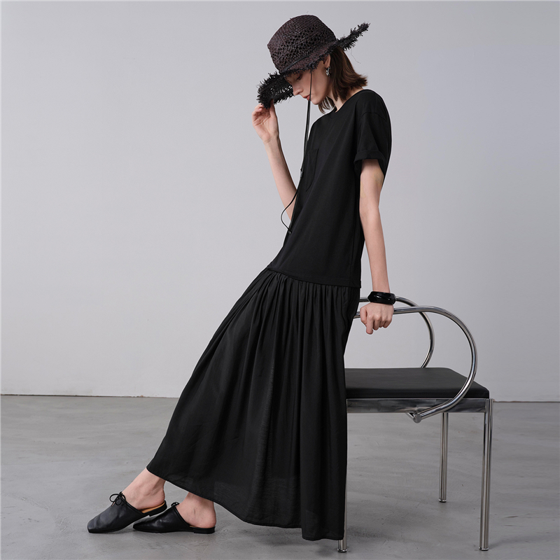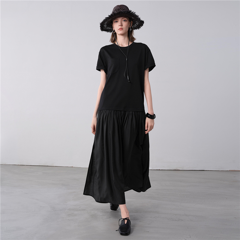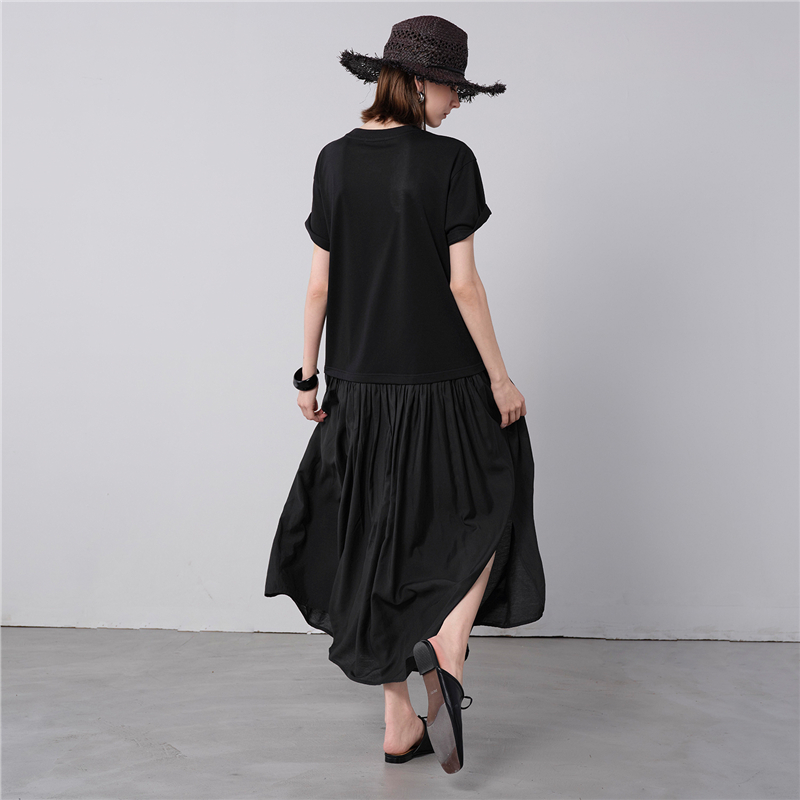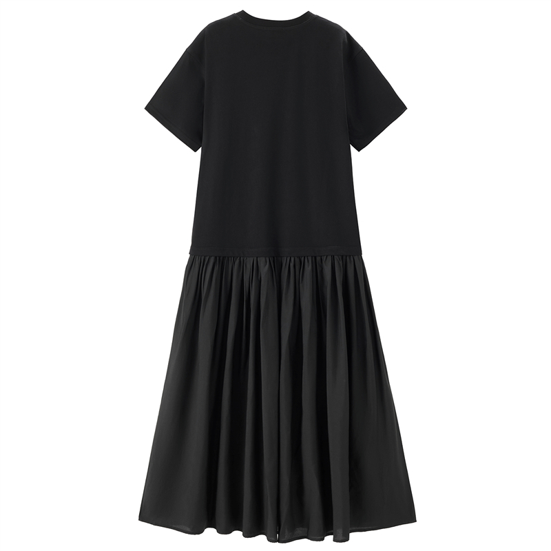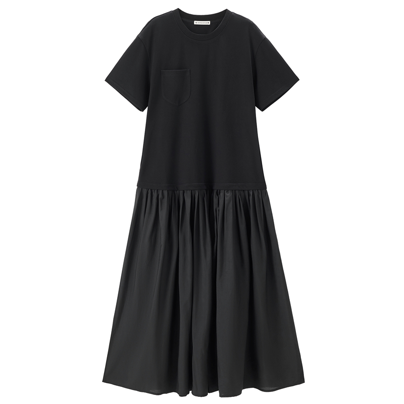 【網上獨家】女裝假兩件拼接圓領短袖連衣裙