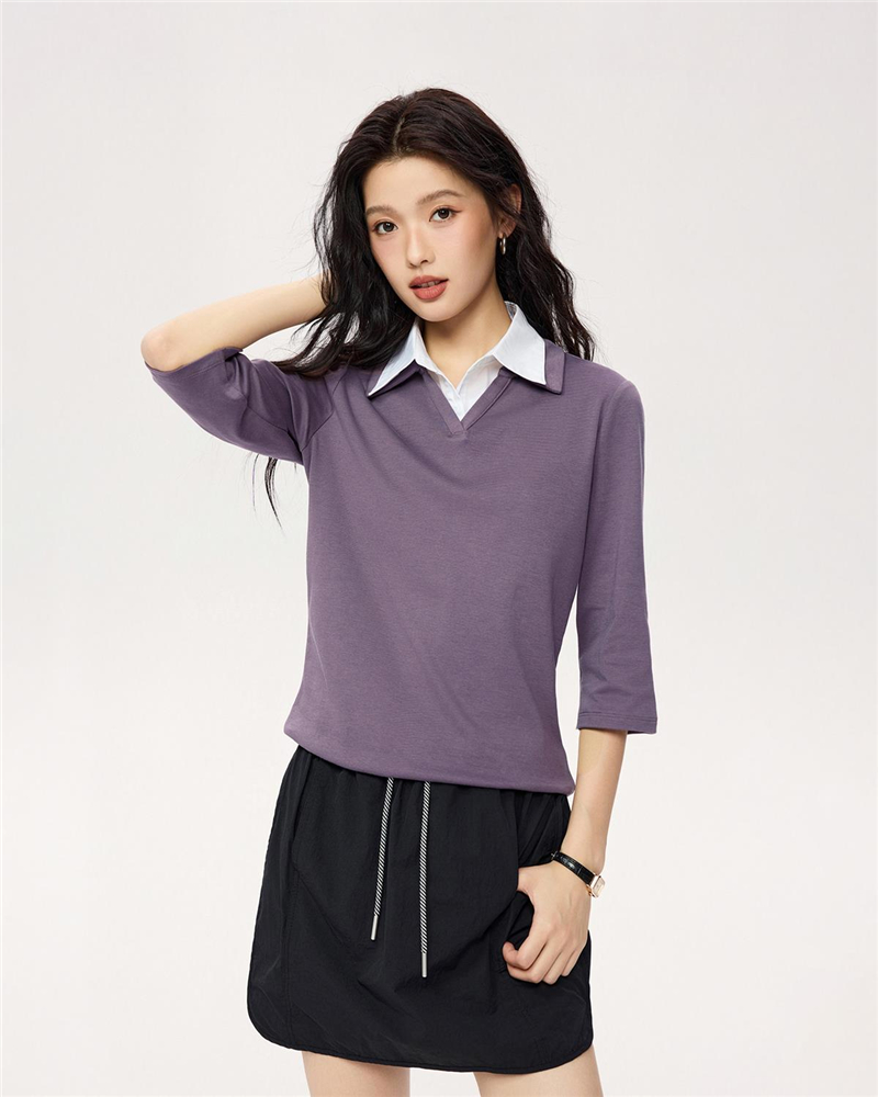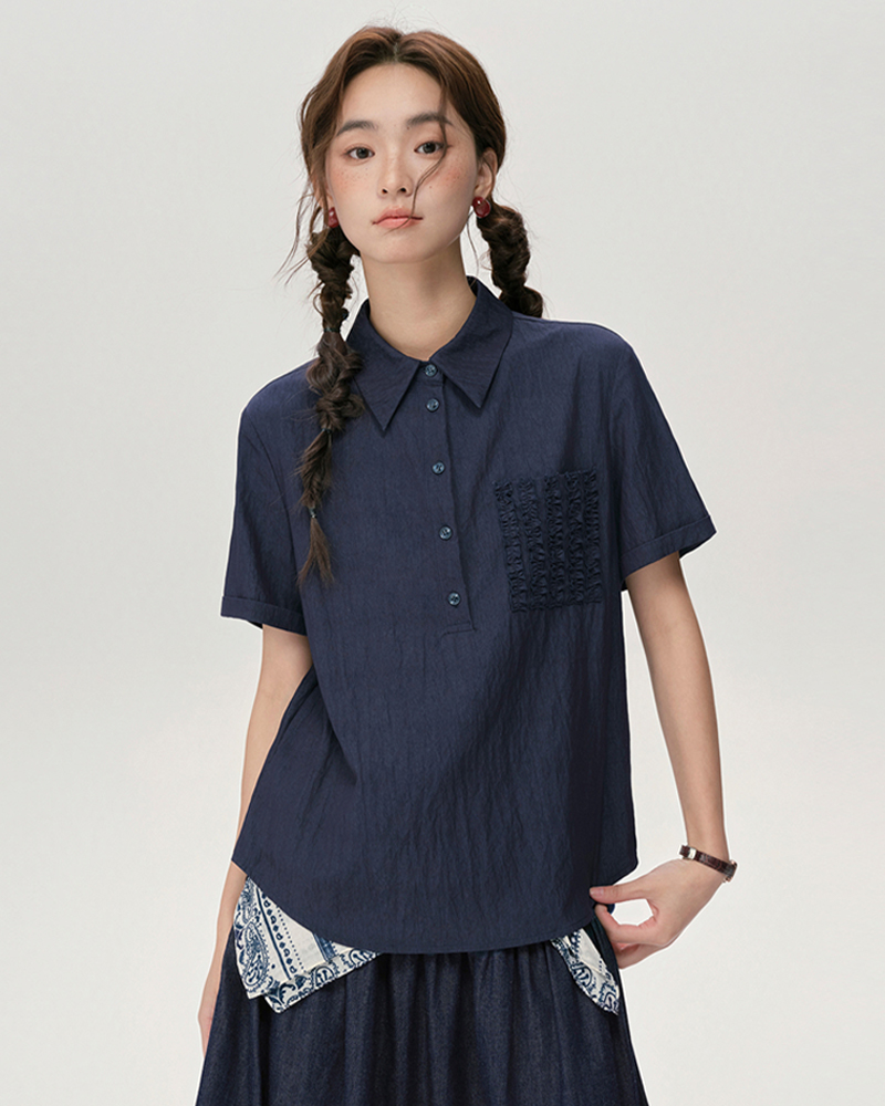 女裝拼接中袖襯衫