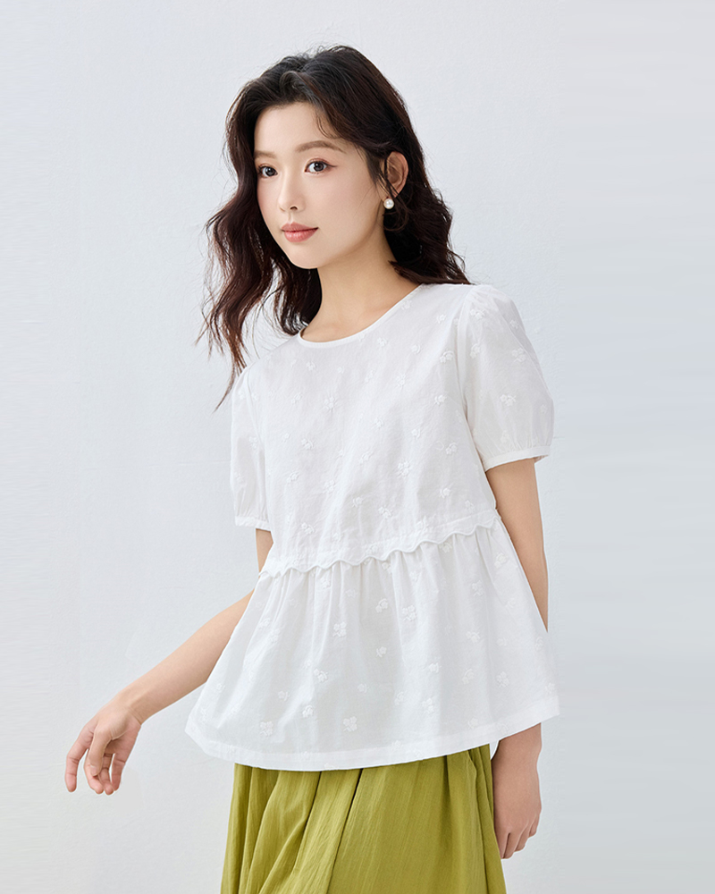 女裝荷葉邊圓領短袖襯衫