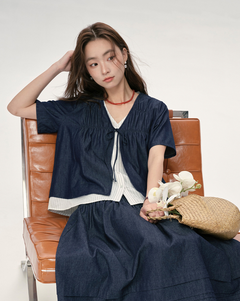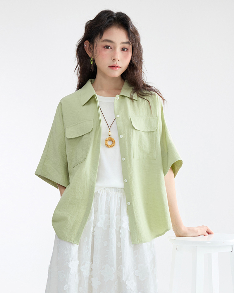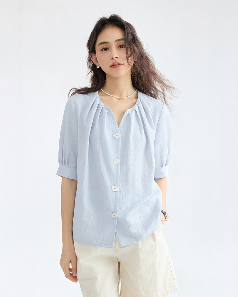 女裝壓褶中袖襯衫