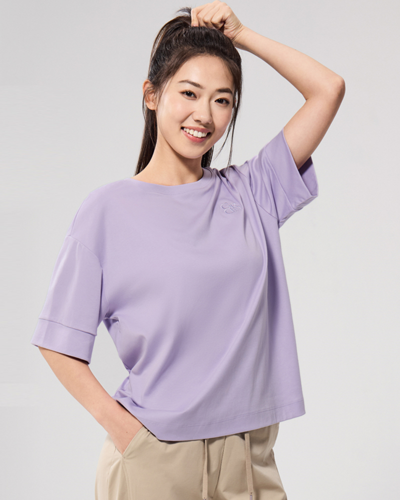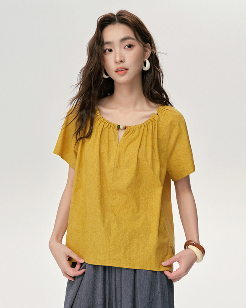 女裝純棉圓領插肩短袖襯衫