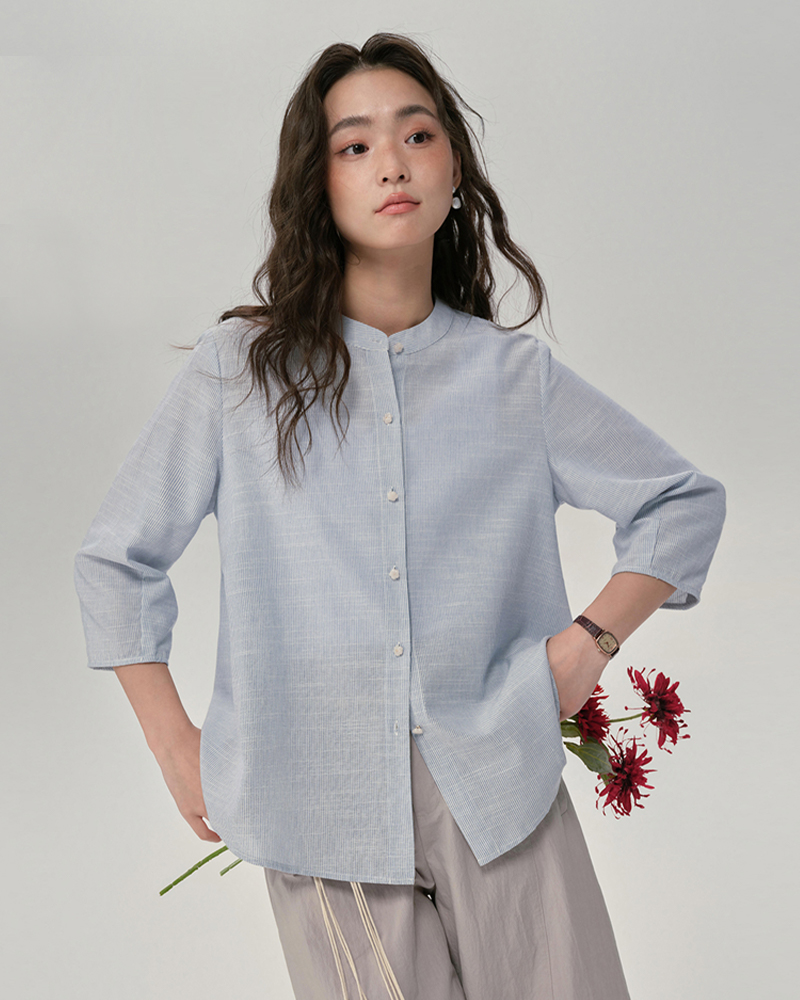 女裝條紋圓領七分袖襯衫