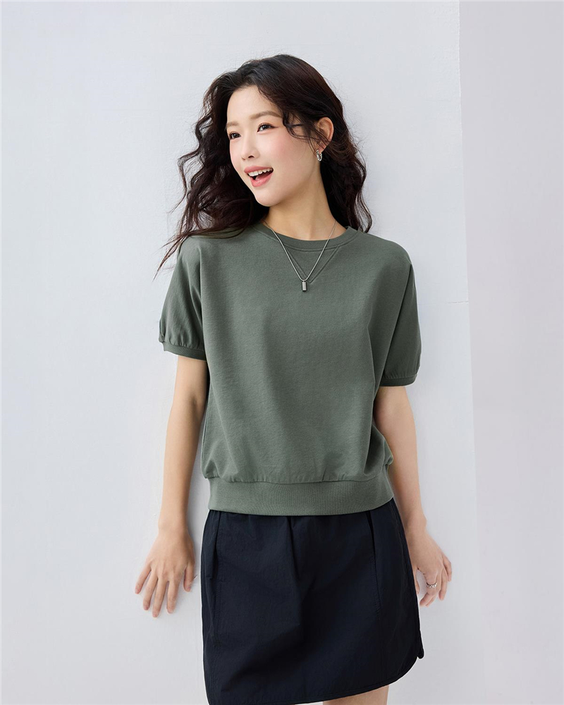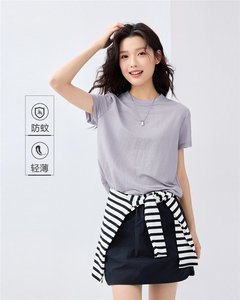女裝防蚊純色圓領短袖T恤