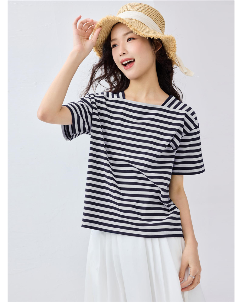 女裝條紋方領短袖T恤