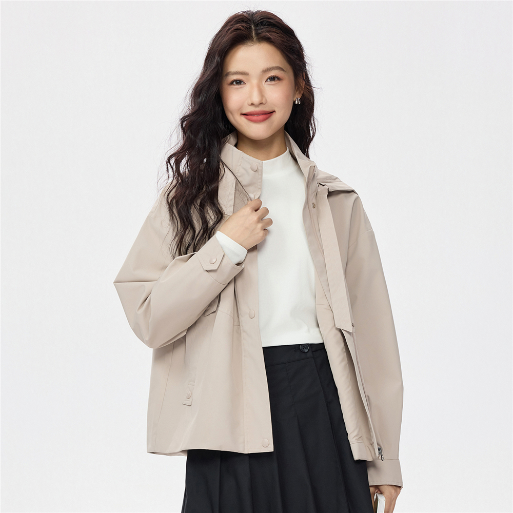 女裝抽繩連帽寬鬆風衣外套