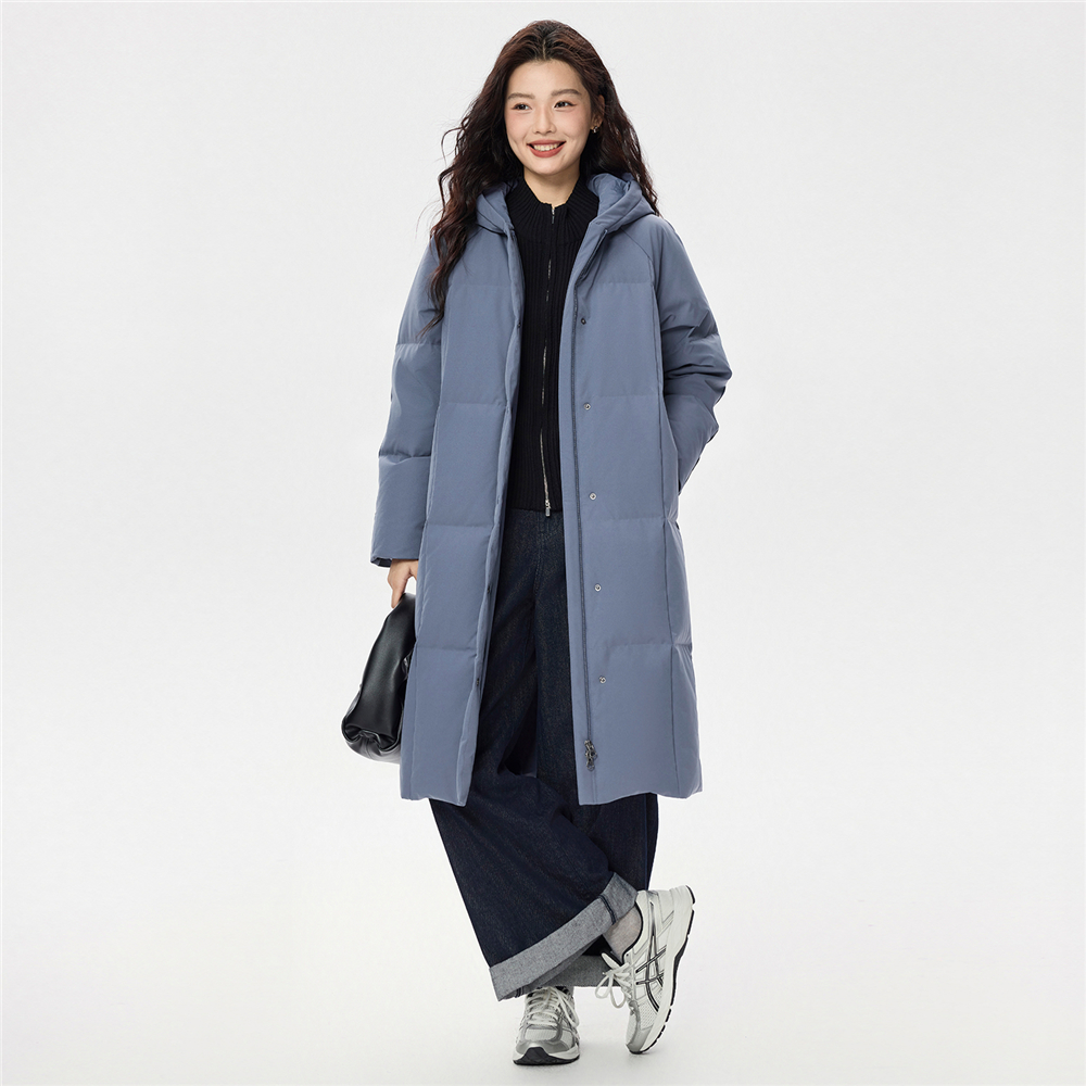 女裝連帽插肩中長款鵝絨外套
