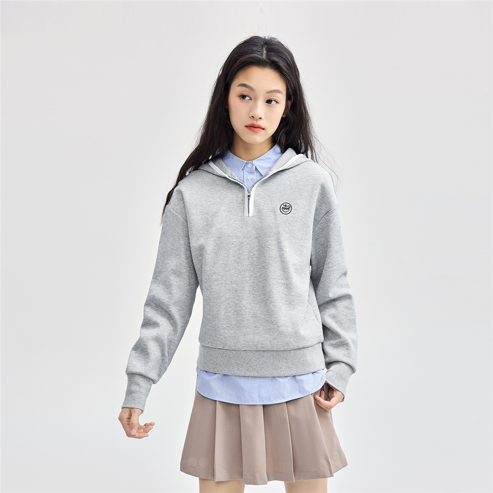 女裝刺繡連帽半開胸衛衣