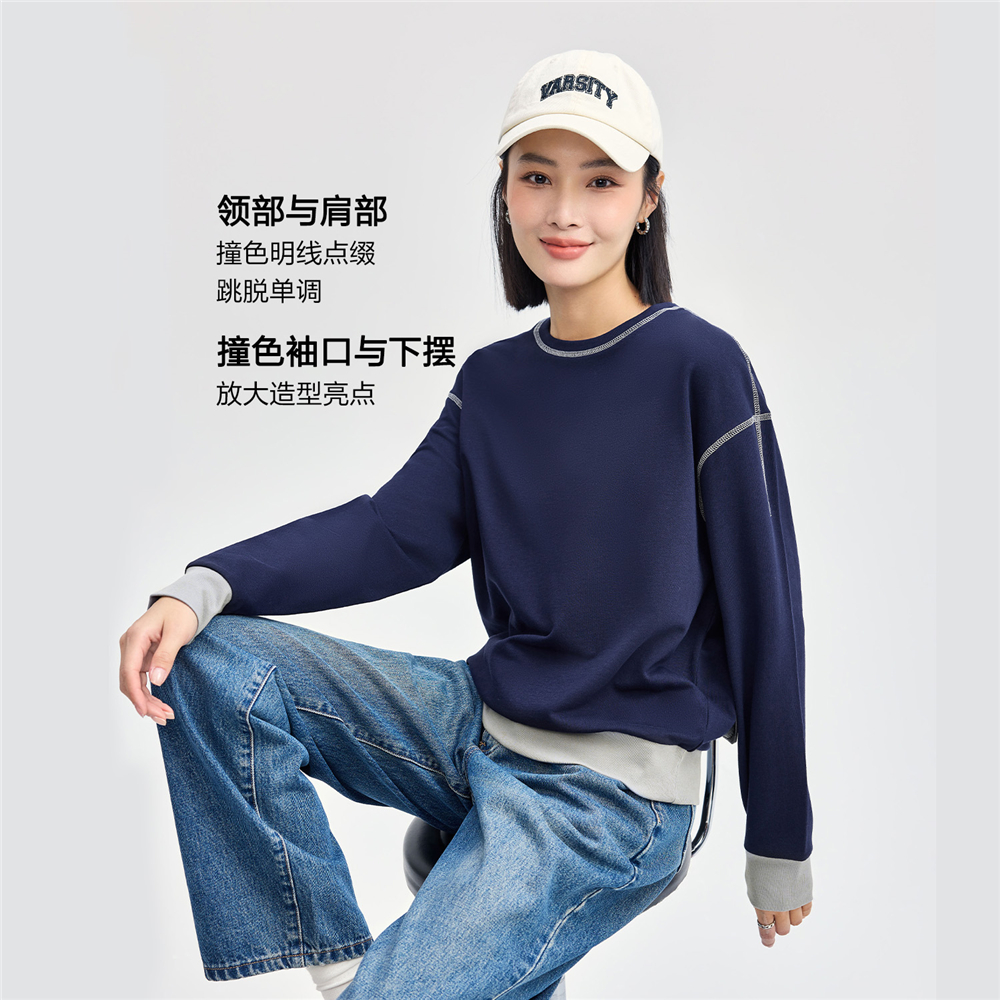 女裝撞色明線套頭衛衣
